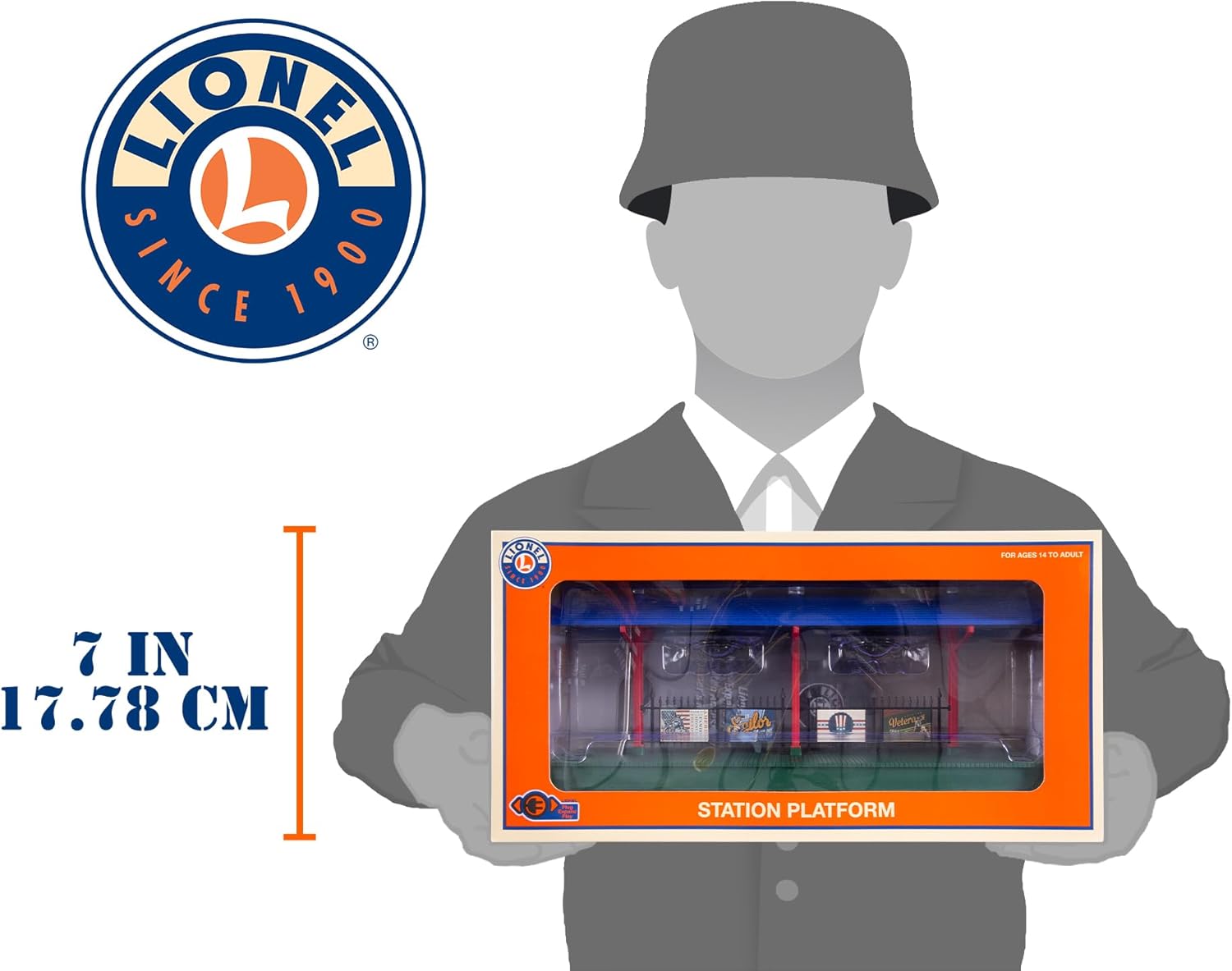 Expand your model train world with the America WWII O Gauge Model Train Illuminated Station Platform Accessory by Lionel. Includes (1) “Liberty” billboard, (1) “Sailor” billboard, (1) “1776” billboard, and (1) “American Veterans” billboard. Compatible with Lionel O Gauge, features a realistic design, uniquely decorated billboards on fencing, and LED Illumination. Recommended for ages 14 years and up.