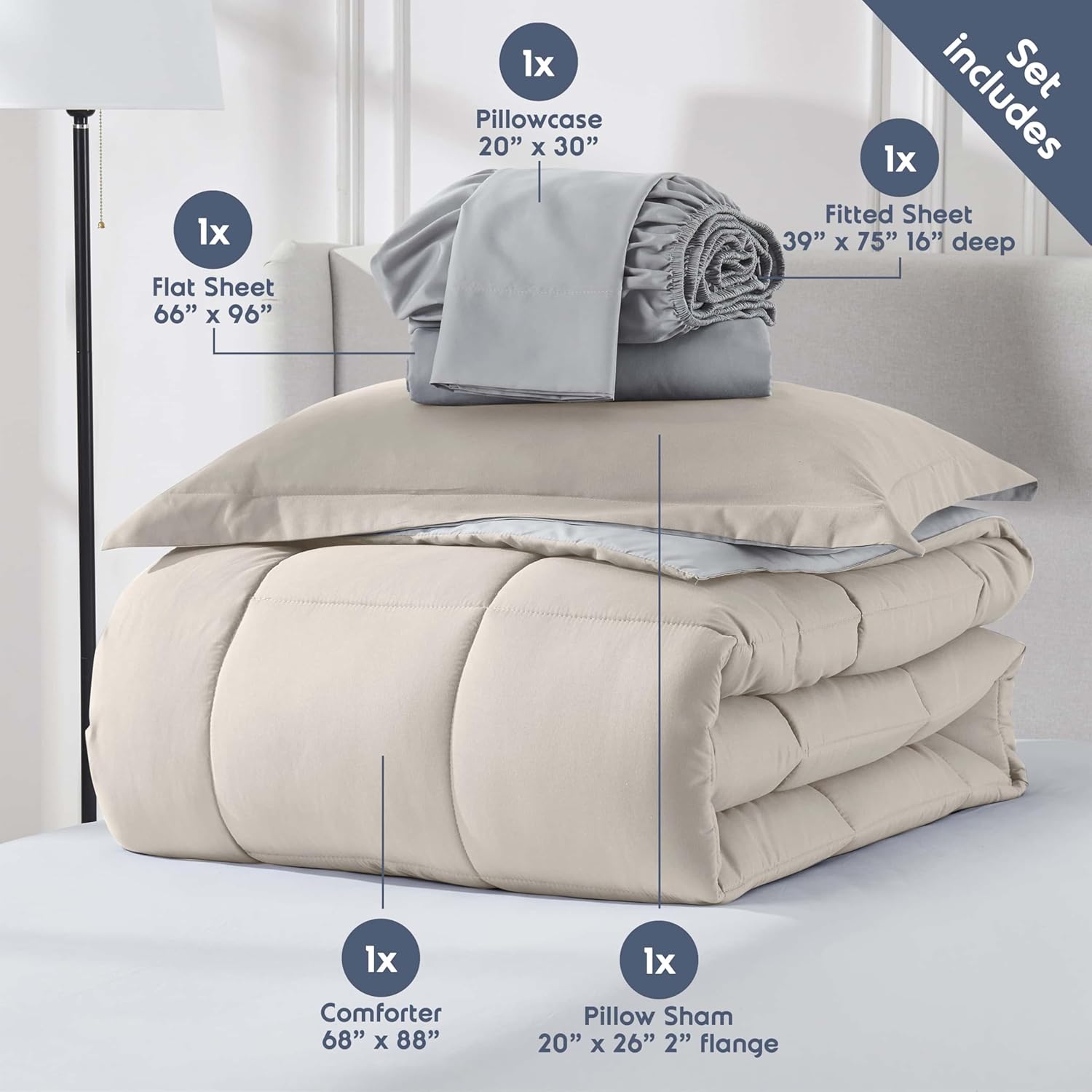 | Included Components | 1 Fitted Sheet (39" x 80" + 16"), Comforter, Flat Sheet, Pillow Cover, Pillow Sham |